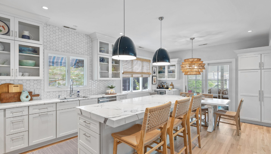 Nestled between the Assawoman Canal and Jefferson Creek in South Bethany Beach, Delaware, this vacation home remodel brings together a perfect blend of contemporary style and coastal charm. To enhance functionality and aesthetic appeal, our team worked closely with our client and interior designer to reimagine the kitchen and bathrooms. Together, we brought this home from the 1990s into the 2020s.