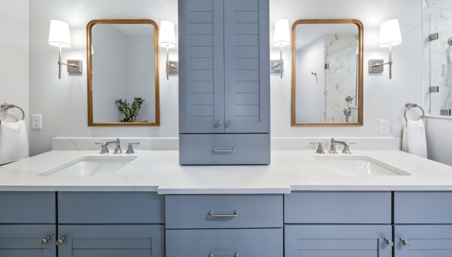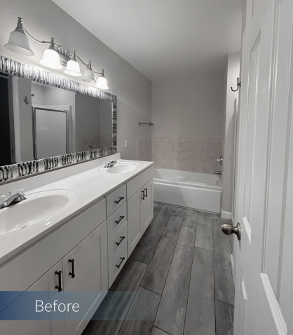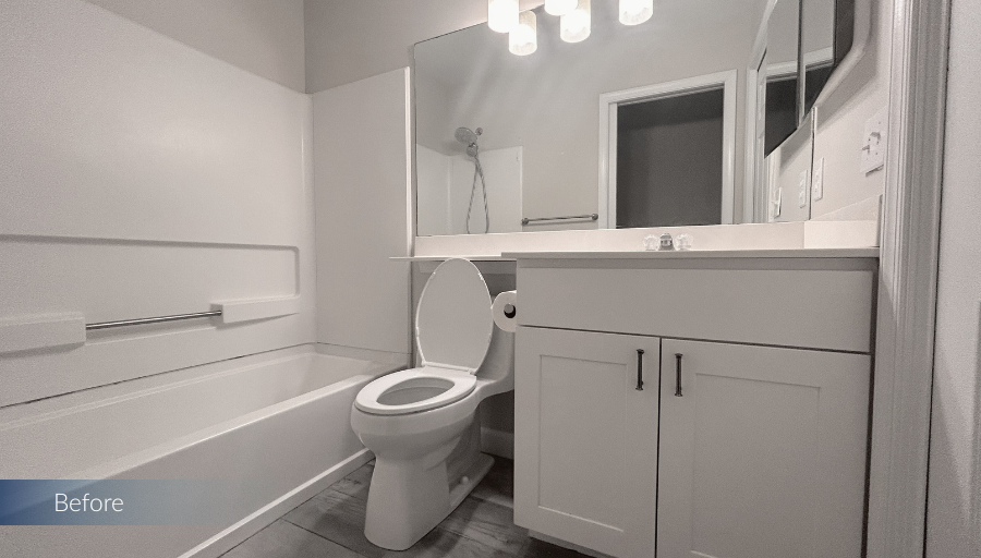 This Sea Colony condo remodel brings a refined coastal feel to both of the home’s bathrooms. Through thoughtful layout updates and carefully selected finishes, we elevated two everyday spaces into bright, inviting retreats.