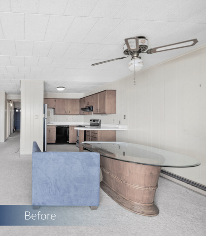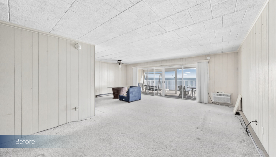 Welcome to our transformation in Ocean City, Maryland! This waterfront condo underwent a complete makeover, turning a dated mid-century space into a modern coastal retreat. Our team opened up the layout, infused it with contemporary coastal finishes, and maximized the stunning ocean views. From relocating the kitchen for better functionality to creating a serene, spa-like primary bathroom, every detail was designed to enhance comfort and style.