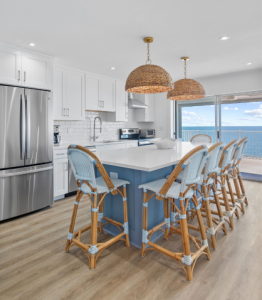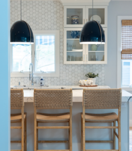 In a coastal home, your floors need to work as hard as they look good. Think sandy feet, wet towels, pets, and daily traffic, all without sacrificing style. That’s why many homeowners choose wide-plank engineered hardwood or luxury vinyl plank (LVP). These options bring the beauty of natural wood with the durability needed for high-moisture, high-traffic areas. Earthy tones, such as oak, amber, and honey, add warmth and blend seamlessly with the surrounding coastal landscape. For bathrooms, laundry rooms, or mudrooms, tile offers an easy-to-clean, long-lasting option with the bonus of texture, pattern, and coastal-inspired colors. The right flooring not only elevates your design, but it also makes beach life easier.
